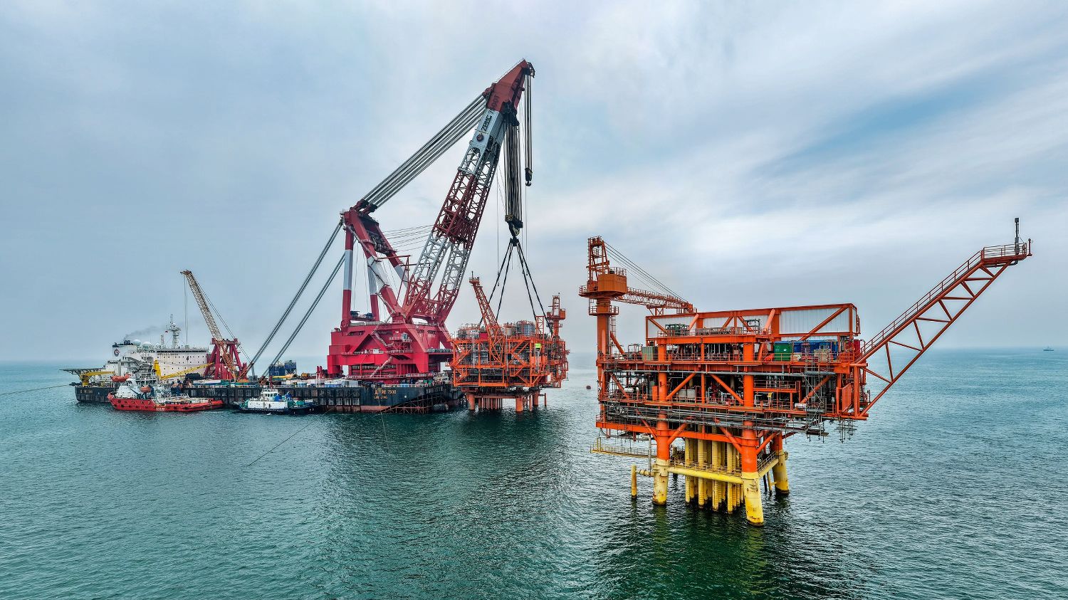 垦利6-1油田位于渤海南部海域,石油探明地质储量超1亿吨,是中国在渤海莱北低凸起浅层勘探领域发现的首个亿吨级岩性大型油田。图为9月8日,垦利6-1油田10-1北区块Ⅱ期开发项目油气平台在渤海海域完成海上安装。