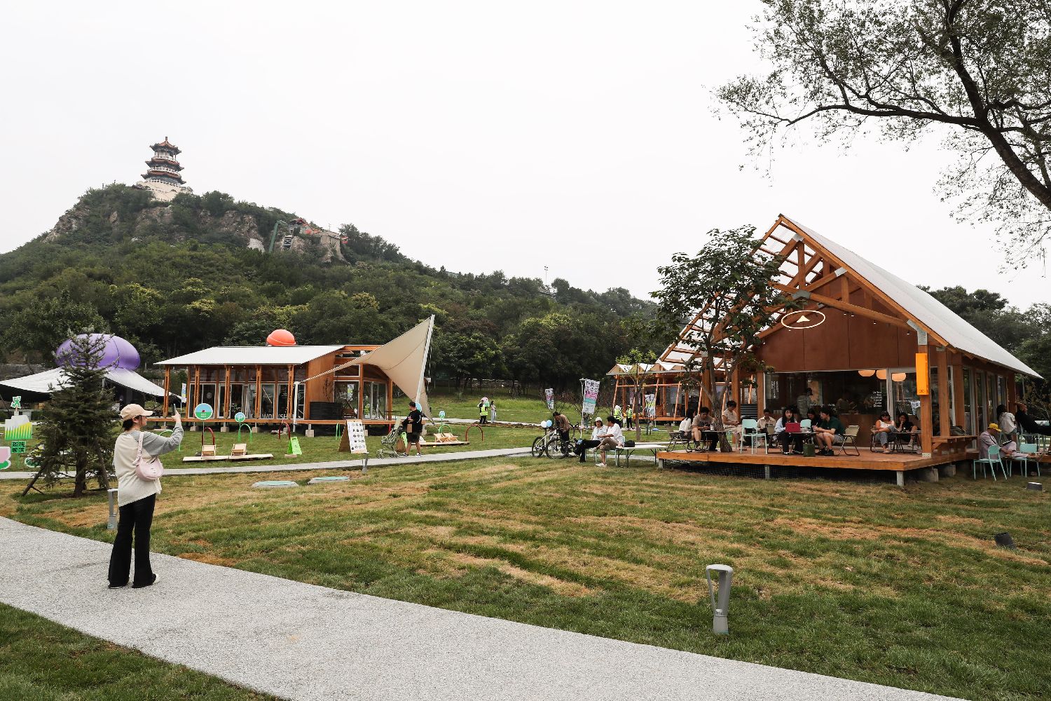 9月10日至14日,“永定河集-开集生活节”活动在2025年中国国际服务贸易交易会期间举行。永定河集位于北京首钢园西侧的永定河畔,以11个特色品牌所在的艺术空间和周围的开放领域为载体,实现创意、休闲、消费等元素的有机结合。图为9月10日,民众在永定河集休闲。(图片来源:本文图片均自中新社)