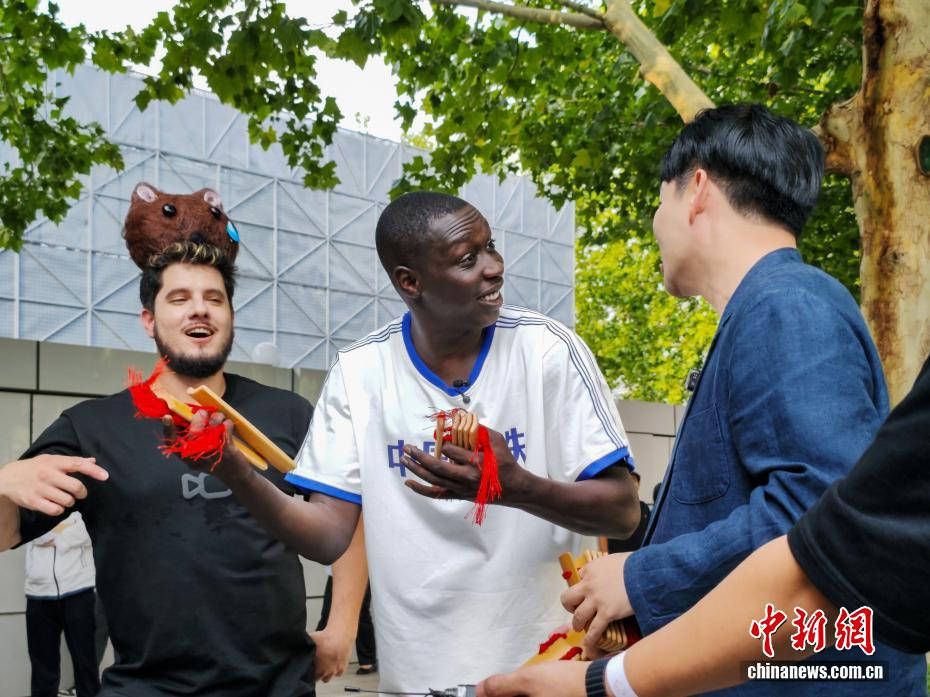 9月10日,“无语哥”(中)学天津快板。(图片来源:本文图片均据中新网)
