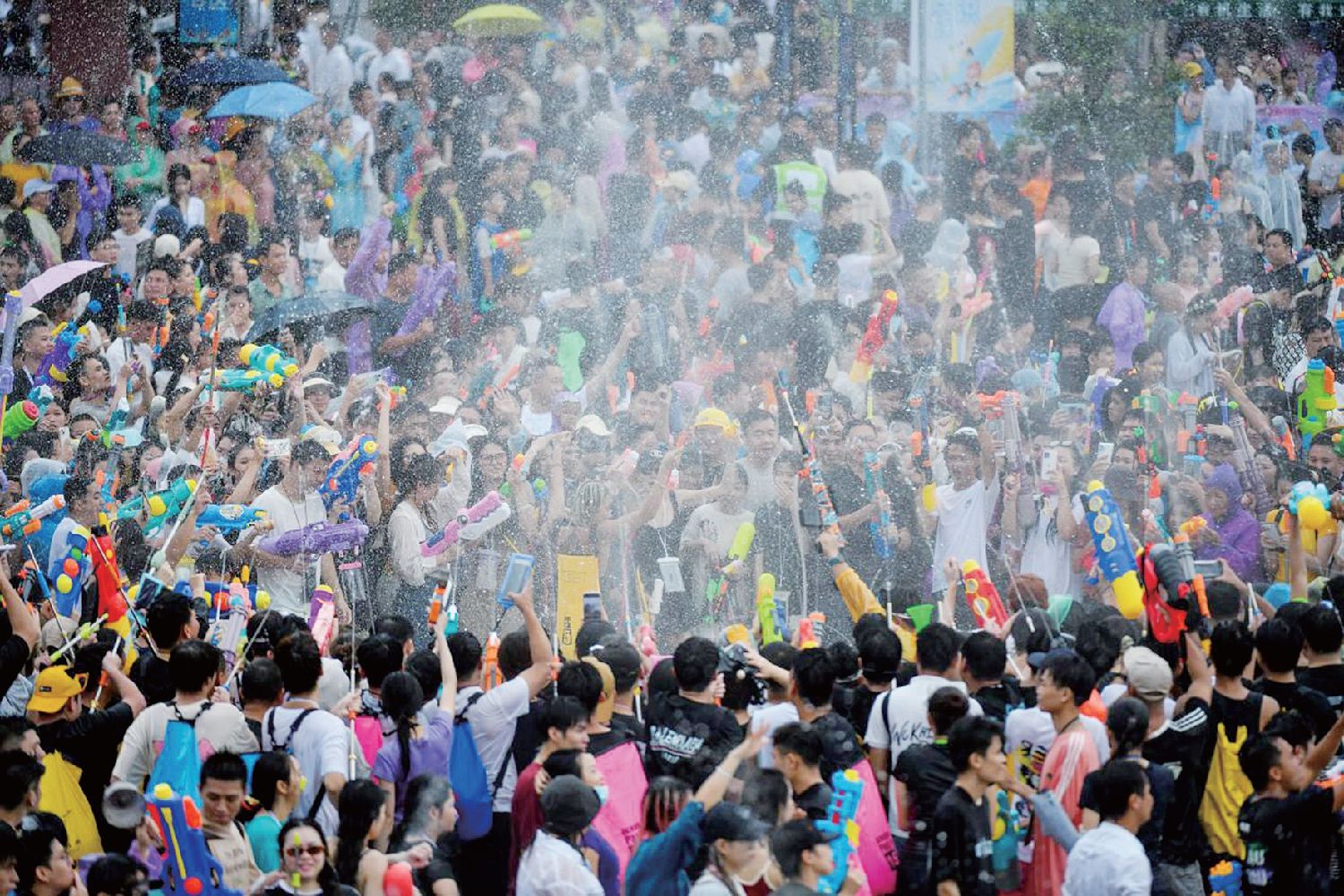 当天,随着嬉水狂欢活动正式开始,整个保亭县城变成了水的世界、欢乐的海洋。人们手持水枪、水盆等各式工具,不分彼此地互相泼水祝福。许多结伴而来的朋友团队在水中追逐嬉闹,而更多原本素不相识的游客,也通过一场突如其来的“水战”迅速拉近距离。