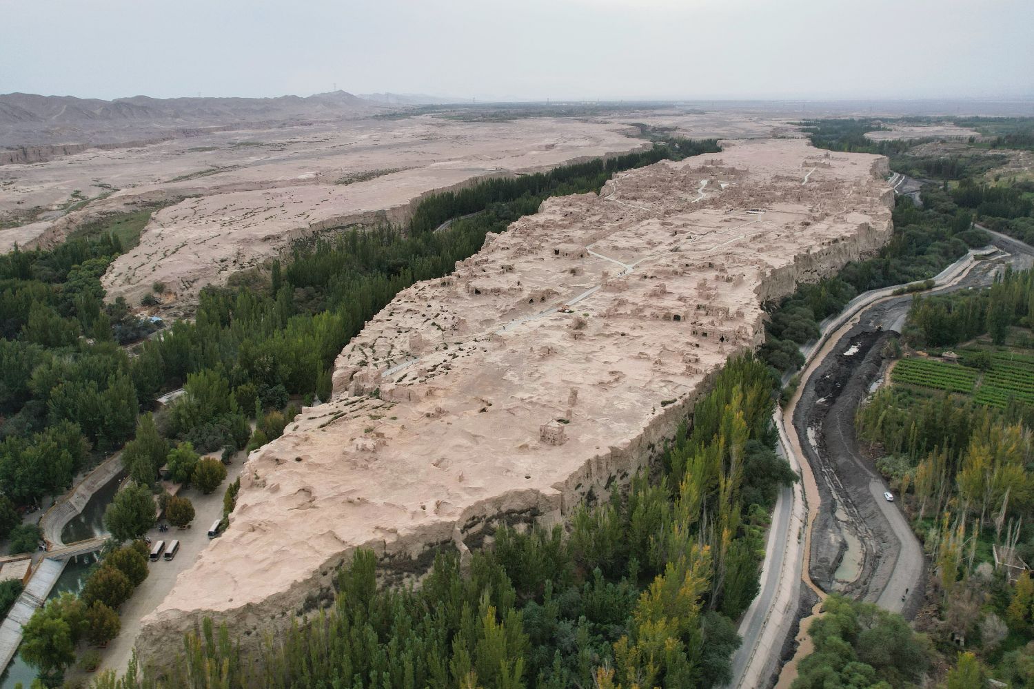 9月10日,航拍新疆吐鲁番交河故城。(无人机照片)(图片来源:中新社)