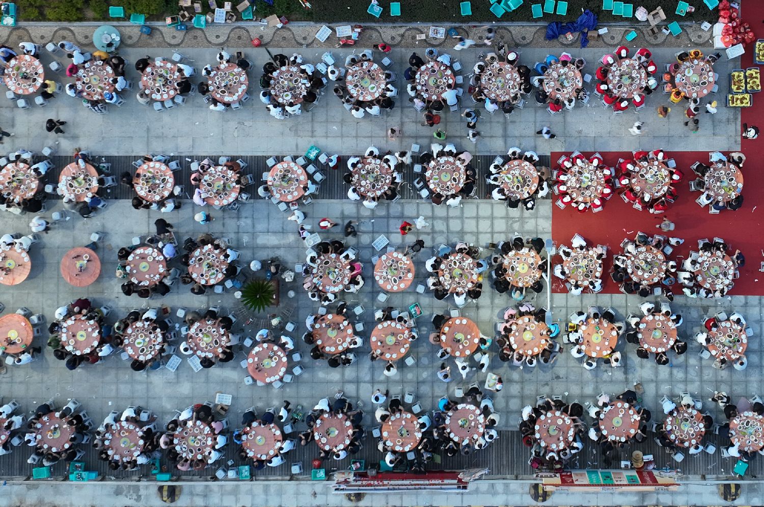 9月15日,浙江宁波象山在海边举办千人宴,场面壮观。