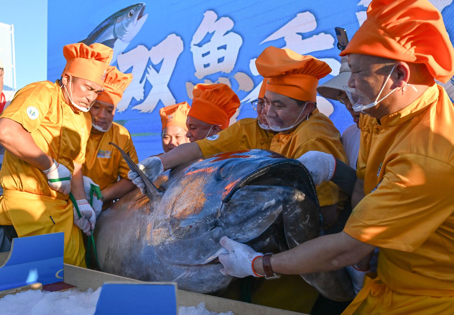 浙江象山举办千人宴 分享400多斤金枪鱼