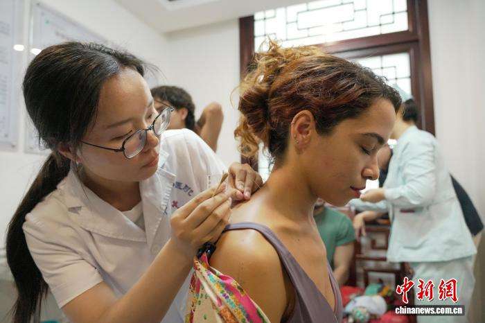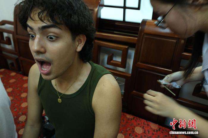 图为拉美网络博主体验中医针灸疗法。(图片来源:本文图片均来自中新网)