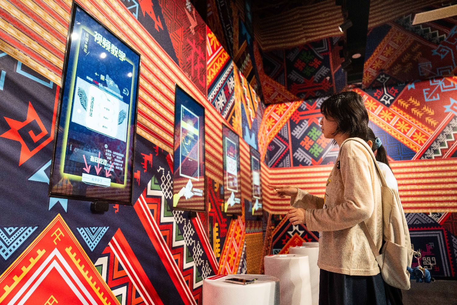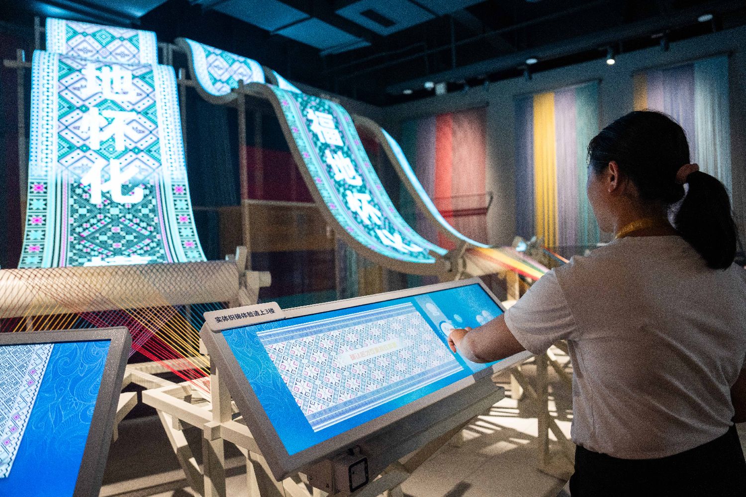 9月16日,在湖南省怀化市五溪非遗园,游客在体验数字化织锦。