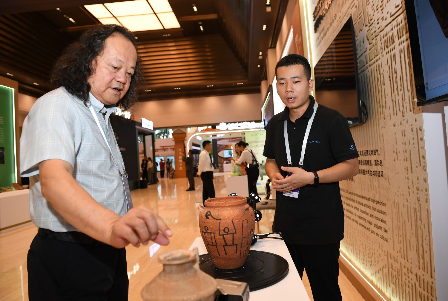 9月17日,与会嘉宾在论坛的文化遗产数字化精品项目展上了解思看科技高精度激光三维扫描技术。