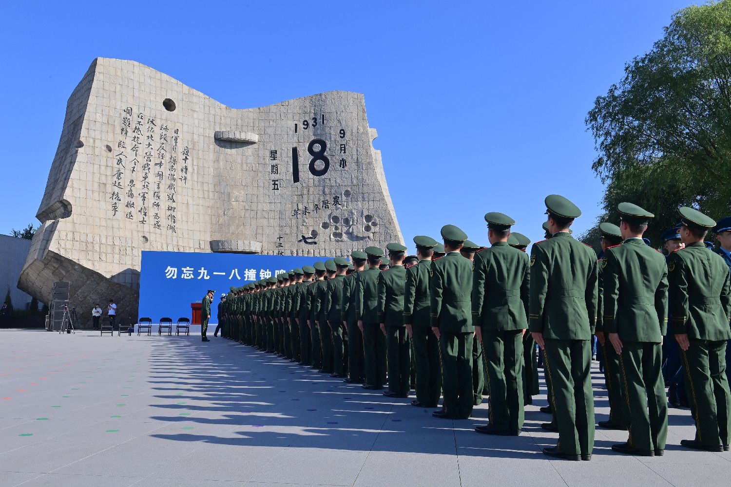 9月18日拍摄的“勿忘九一八”撞钟鸣警仪式现场。(图片来源:本文图片均据新华社)