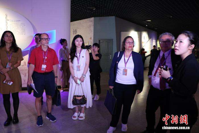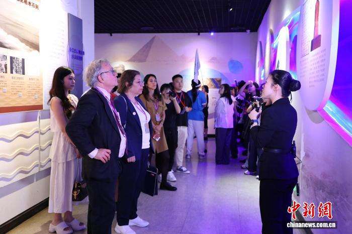 白鹤梁题刻是长江文明的“活化石”,题刻内容涵盖诗词、记赋、题记等,黄庭坚等文人墨客的作品与水文科学记录交织,形成“历史、艺术与科学共生”的独特景观。图为中外专家参观重庆白鹤梁水下博物馆。(图片来源:本文图片均据中新网)