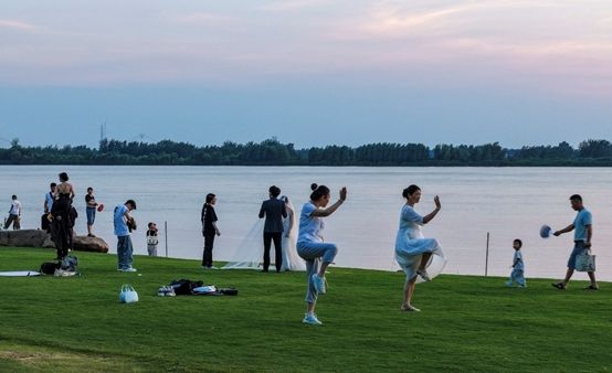 游客在马鞍山市滨江公园游玩、拍照。长江边成为市民纳凉、游览、健身、休闲的好去处。(图片来源:主办方供图)