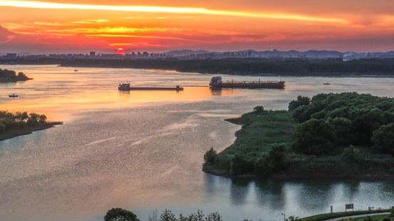 位于长江之滨的安徽马鞍山市薛家洼生态园,在夕阳的映照下,勾勒出一幅“江天一色”的生态长卷。(图片来源:主办方供图)