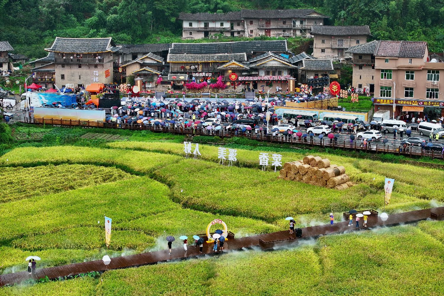 9月23日,福建省2025年中国农民丰收节主会场活动在仙游县菜溪乡象星村举行。活动以“庆农业丰收享美好生活”为主题,举办丰富多彩的文艺展演、农产品展销、乡村文化体验等系列活动。图为民众在田间游玩。(图片来源:本文图片均自中新社)