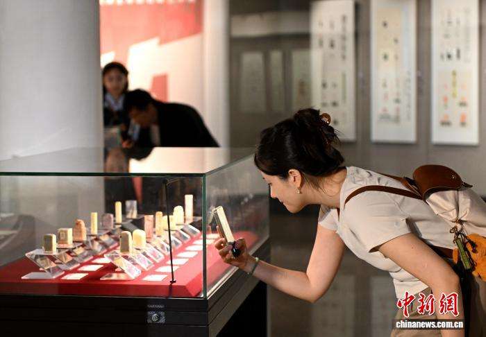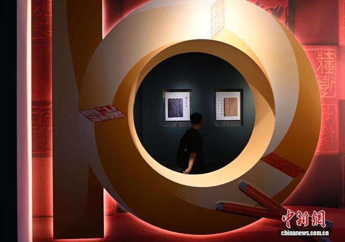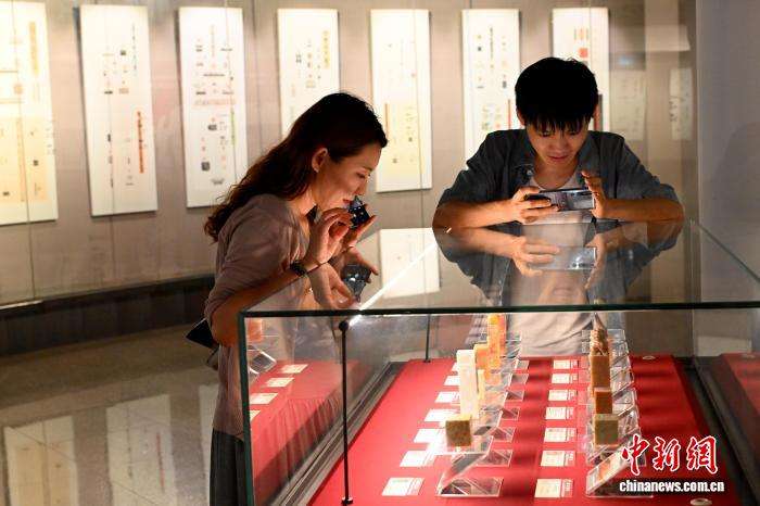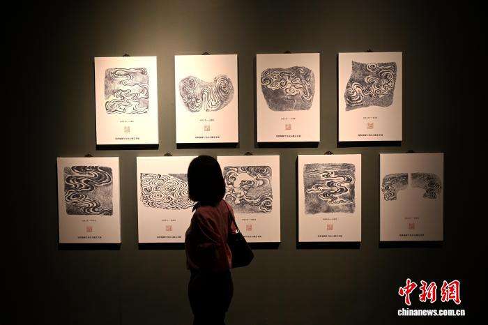9月23日,郑世斌的篆刻作品《云纹九式》吸引参观者。
