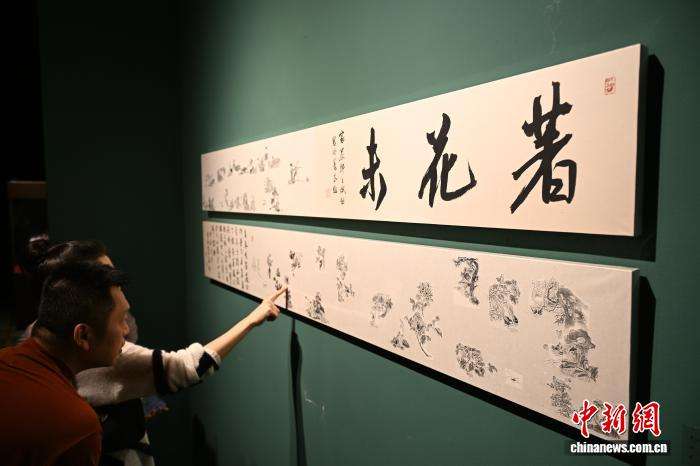 9月23日,郑世斌拓片作品《著花未》吸引参观者。