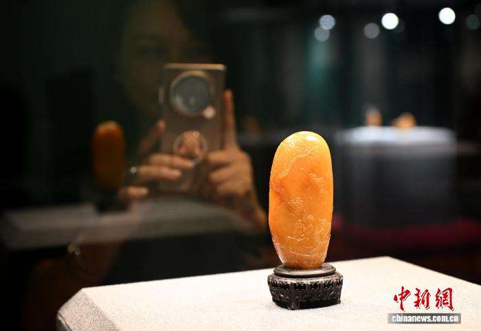 9月23日,郑世斌的寿山田黄冻石作品《渔樵耕读》作品吸引参观者。