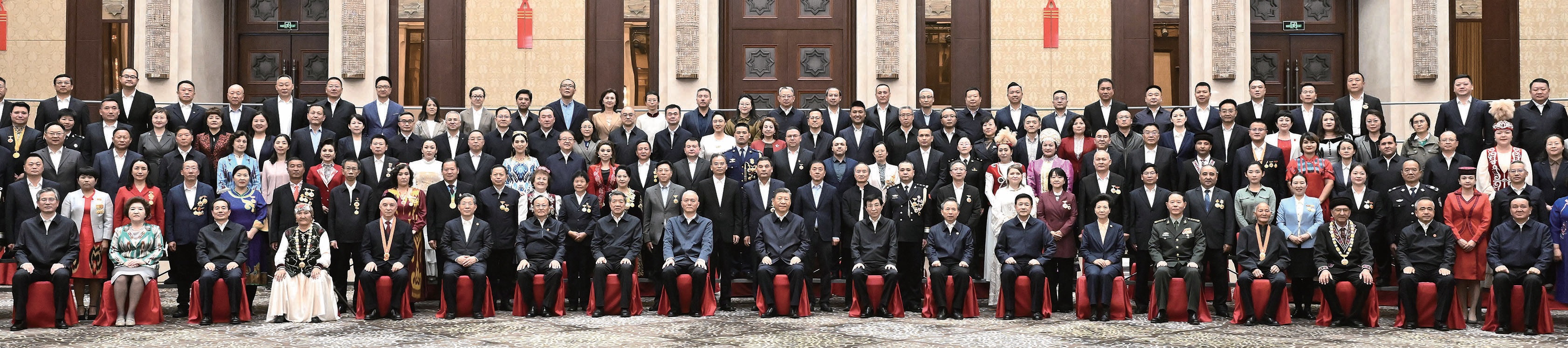 【欧洲时报综合报道】新华社报道,25日上午,新疆维吾尔自治区成立70周年庆祝大会在新疆人民会堂隆重举行。中共中央总书记、中国国家主席、中央军委主席习近平出席庆祝大会。中共中央政治局常委、全国政协主席、中央代表团团长王沪宁出席并讲话,中共中央政治局常委、中央办公厅主任蔡奇出席。中共中央政治局委员、中央统战部部长、中央代表团副团长李干杰宣读中共中央、全国人大常委会、国务院、全国政协、中央军委关于庆祝新疆维吾尔自治区成立70周年的贺电。
