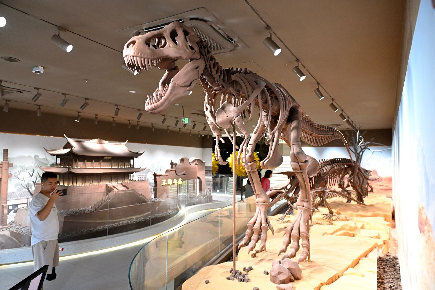 据了解,馆内展示了用10吨巧克力制作的各类雕塑,包括福州传统建筑、恐龙化石、海洋生物、古典人物等,吸引不少市民、游客前去参观。(图片来源:中新社)