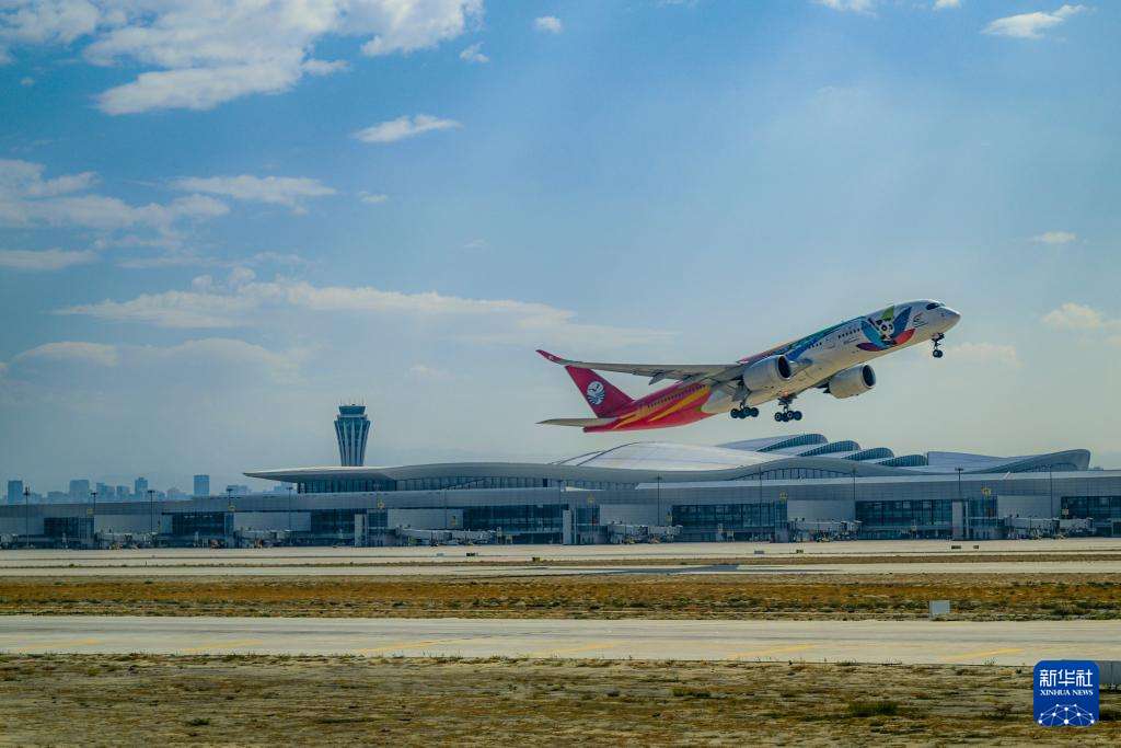 目前,新疆对外开放口岸达19个、共开通双边国际道路运输线路119条、开放多边国际道路货运线路10条、民航航线达595条、25条国际客运航线通达17个国家和地区……从陆港到空港,从口岸到合作区,新疆不断挺进开放前沿,在新时代丝绸之路上焕发勃勃生机。图为9月15日,一架飞机从乌鲁木齐天山国际机场起飞。(图片来源:本文图片均来自新华网)