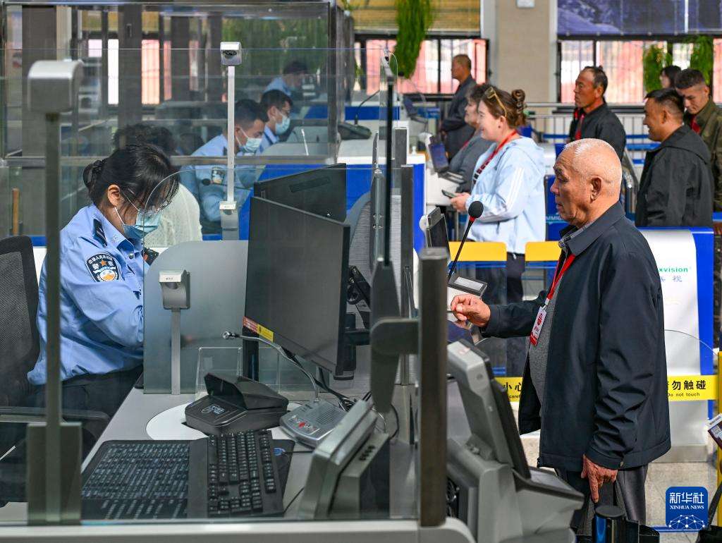 9月17日,巴克图出入境边防检查站的移民管理警察在为来自哈萨克斯坦的旅客办理入境手续。