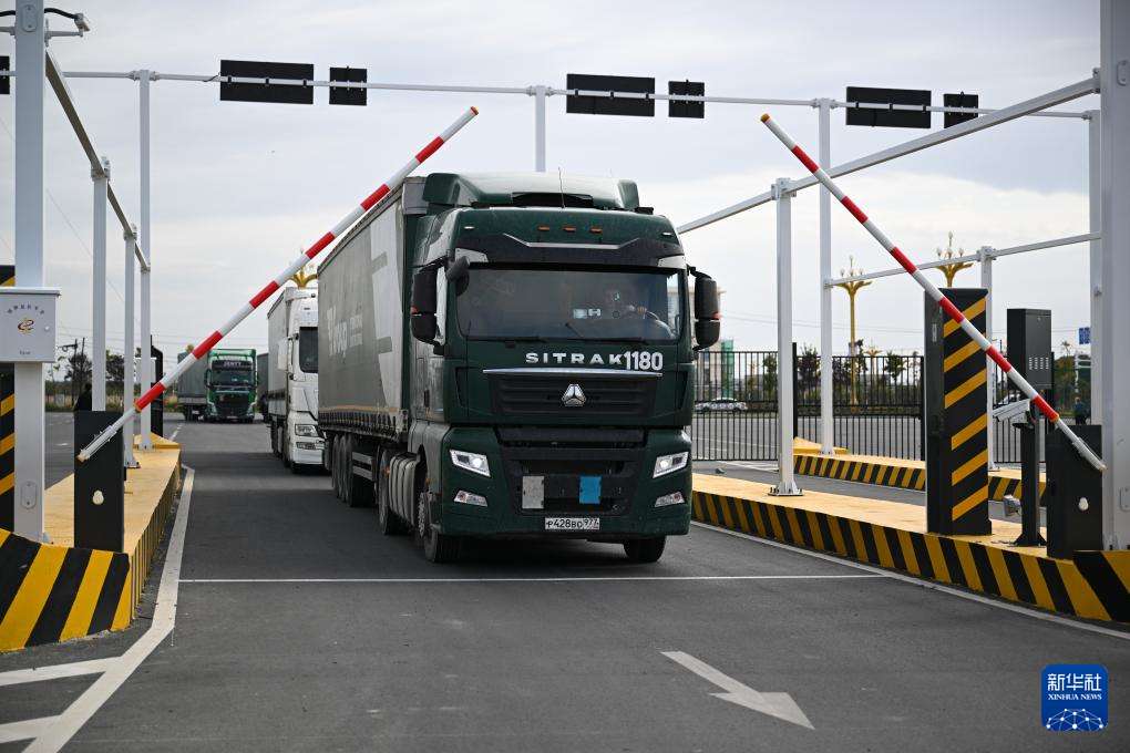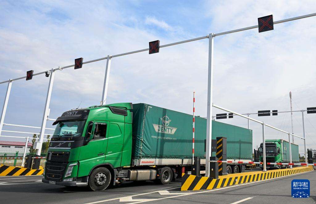 9月17日,来自俄罗斯的货车从位于新疆塔城地区的巴克图口岸海关集中查验场地出关。