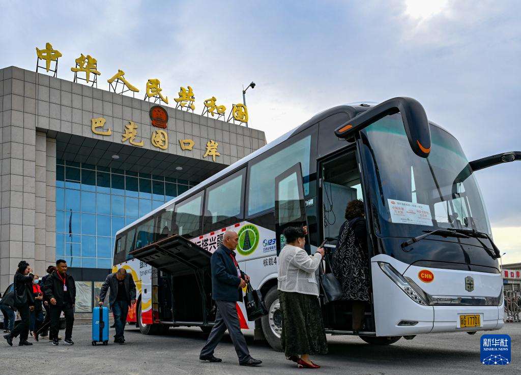 9月17日,游客从位于新疆塔城地区的巴克图口岸出境前往哈萨克斯坦旅游。
