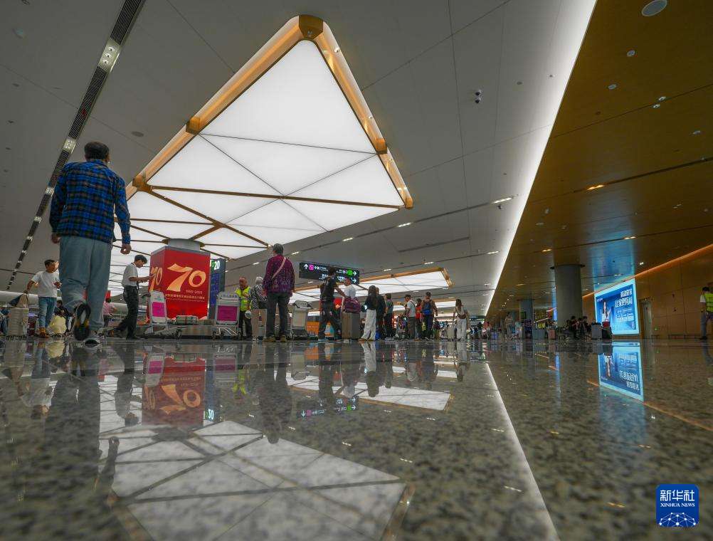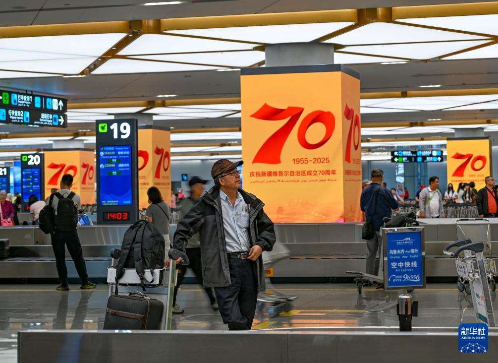 9月15日,旅客在乌鲁木齐天山国际机场等待提取行李。