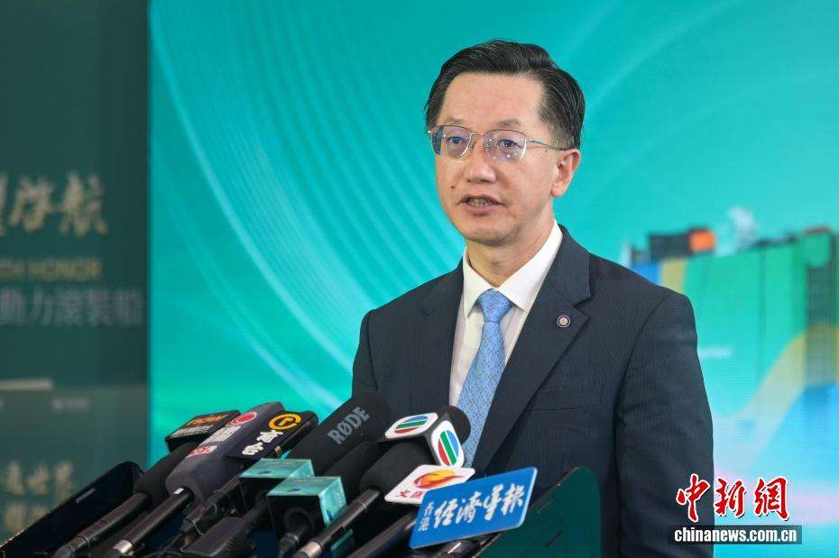 图为招商轮船总经理王永新在现场接受媒体采访。