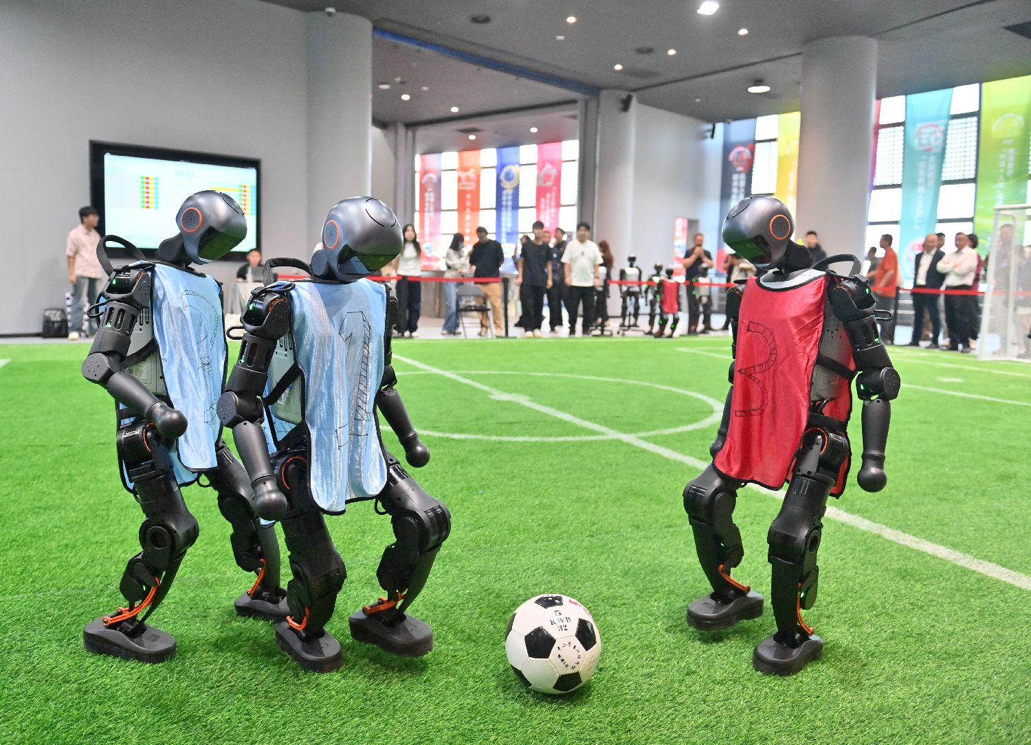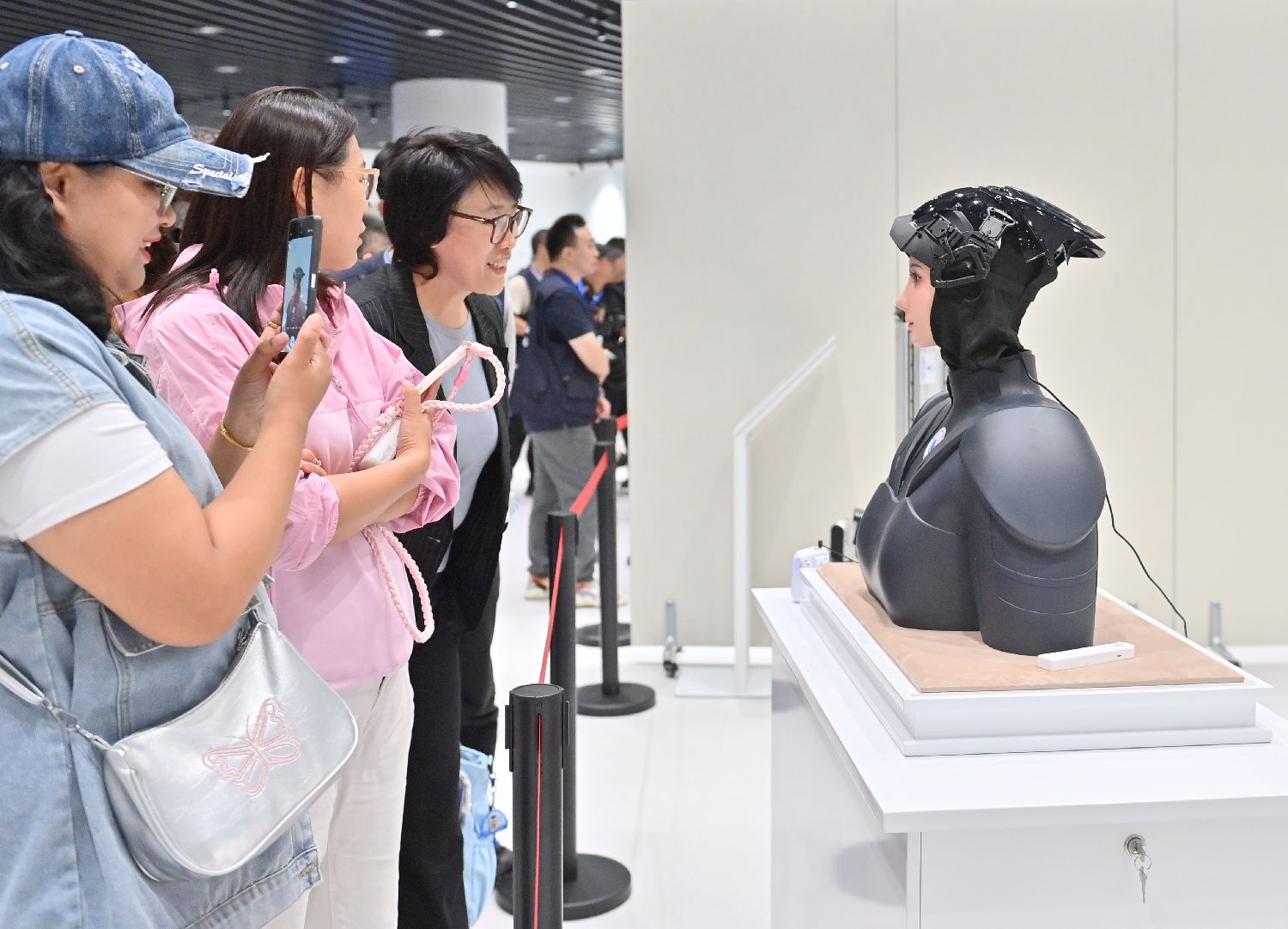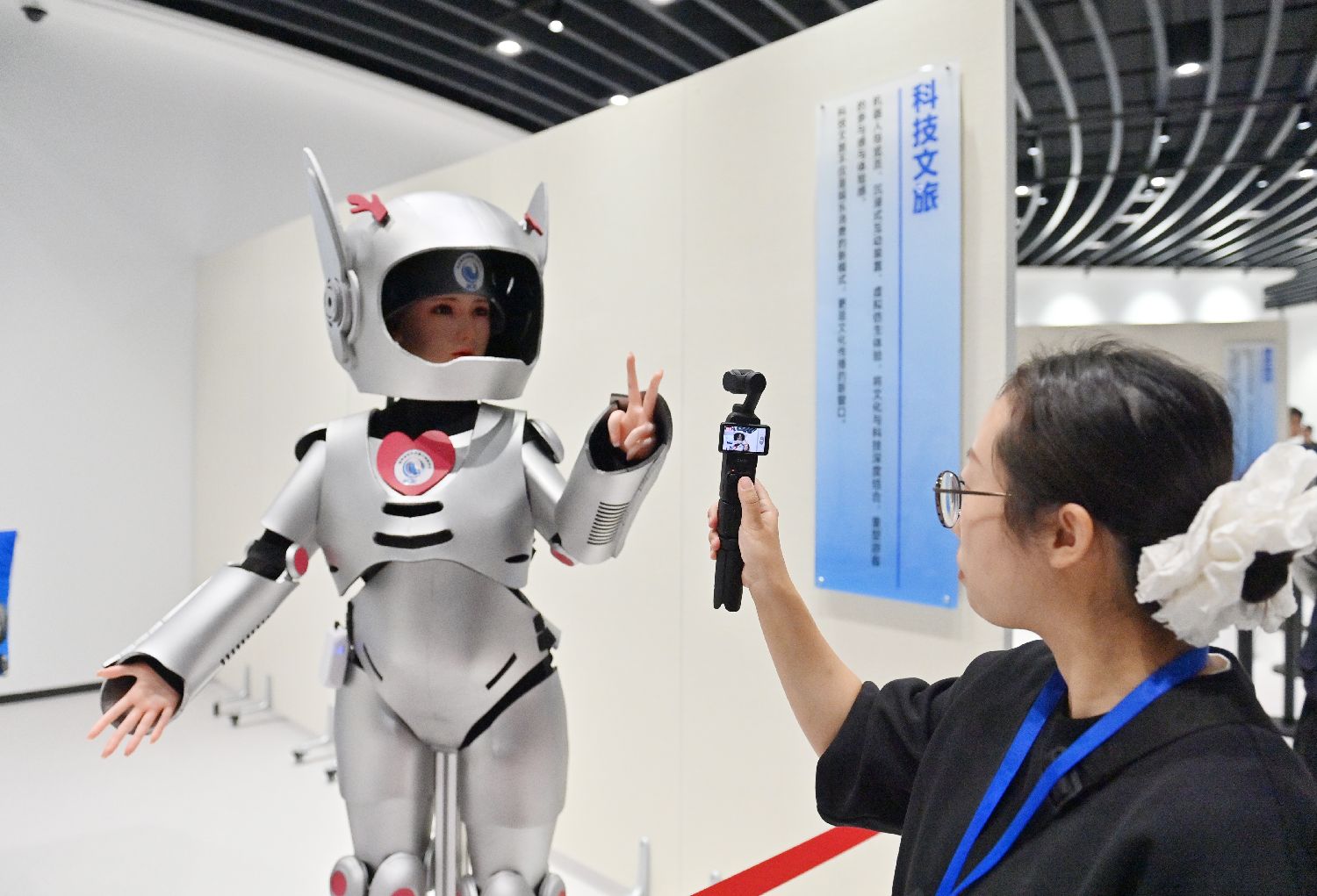 吉林省仿生机器人创新中心应用示范基地集展示、体验、科普、销售等功能于一体,致力于打造沉浸式科技消费新地标。图为参观者观看机器人演奏乐曲。(图片来源:本文图片均自中新社)