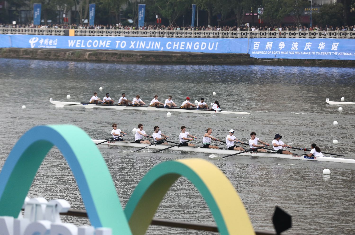 2025年成都赛艇公开赛10月1日开桨。(图片来源:中新社)