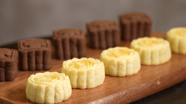 (茉莉柠檬酥皮月饼和生椰拿铁月饼)