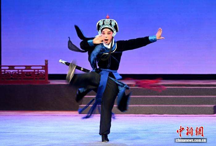 图为台湾演员廖采宸表演昆曲《扈家庄》选段。