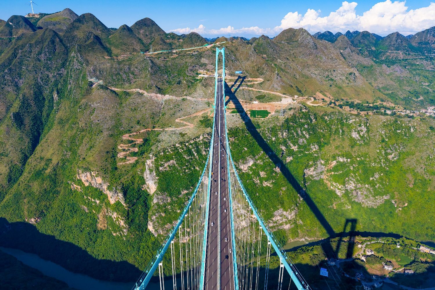 图为世界第一高桥贵州花江峡谷大桥。(无人机照片)(图片来源:龙建睿 摄)