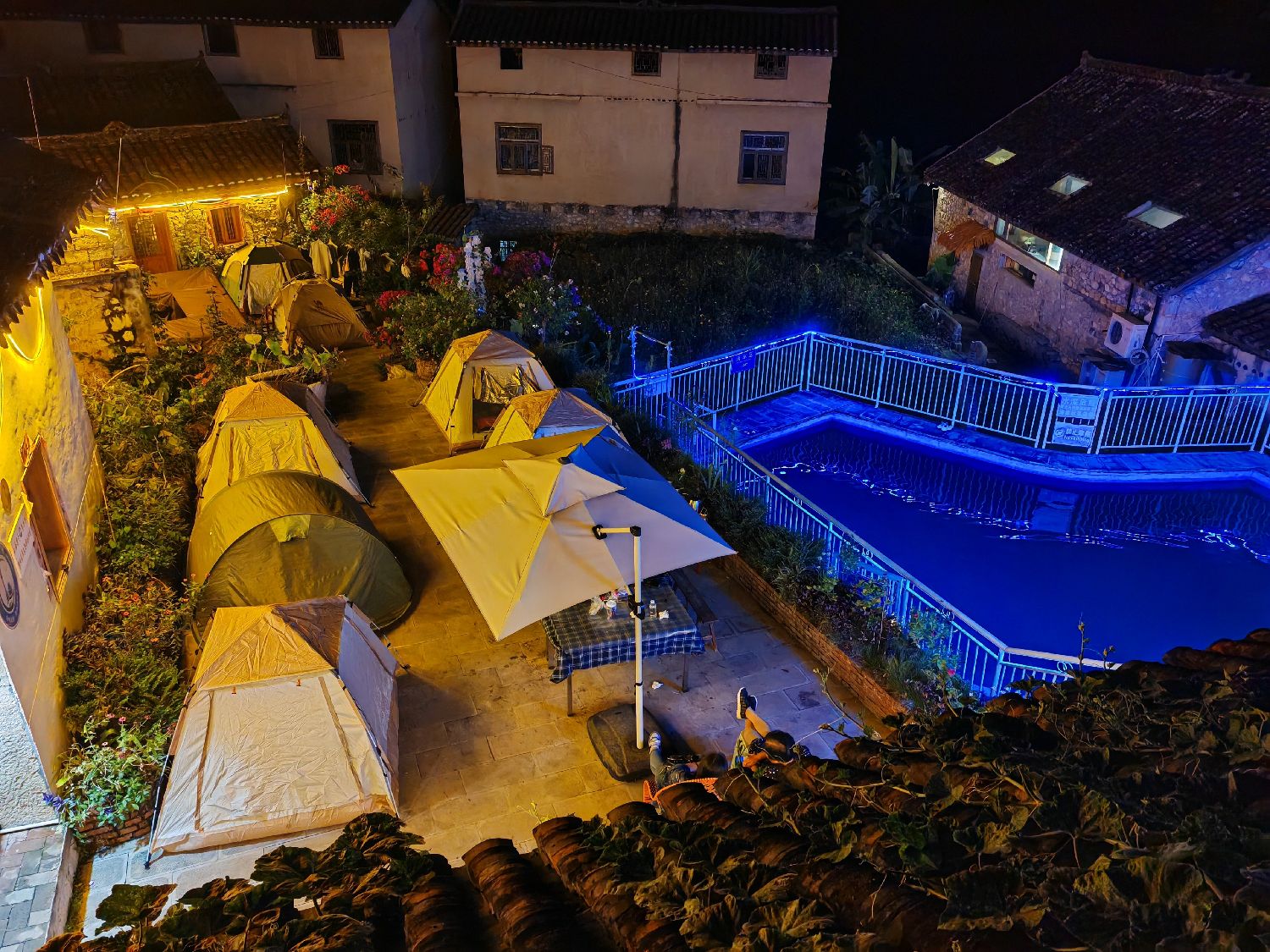 10月3日,游客在贵州省贞丰县平街乡花江村村民林国权的民宿院子内搭帐篷。(图片来源:受访者供图)