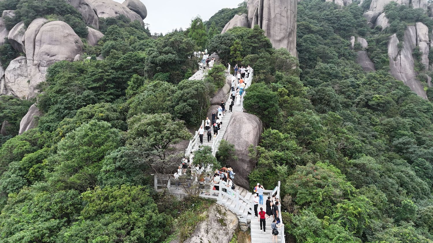 10月1日,福鼎太姥山景区内,众多游客前往登高览胜。(图片来源:中新社)
