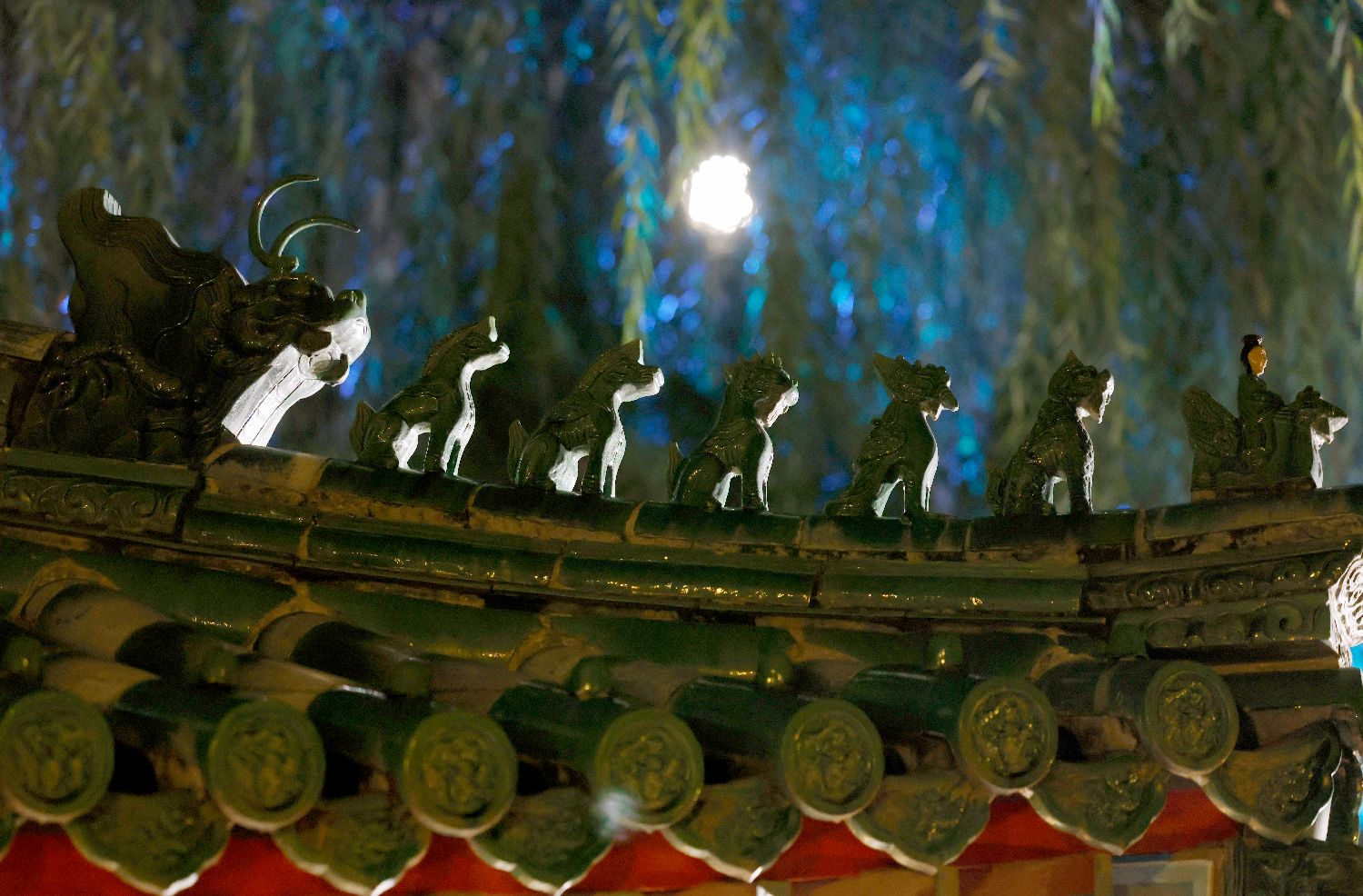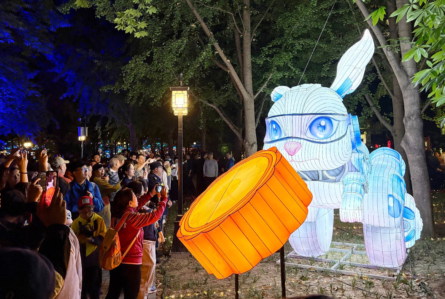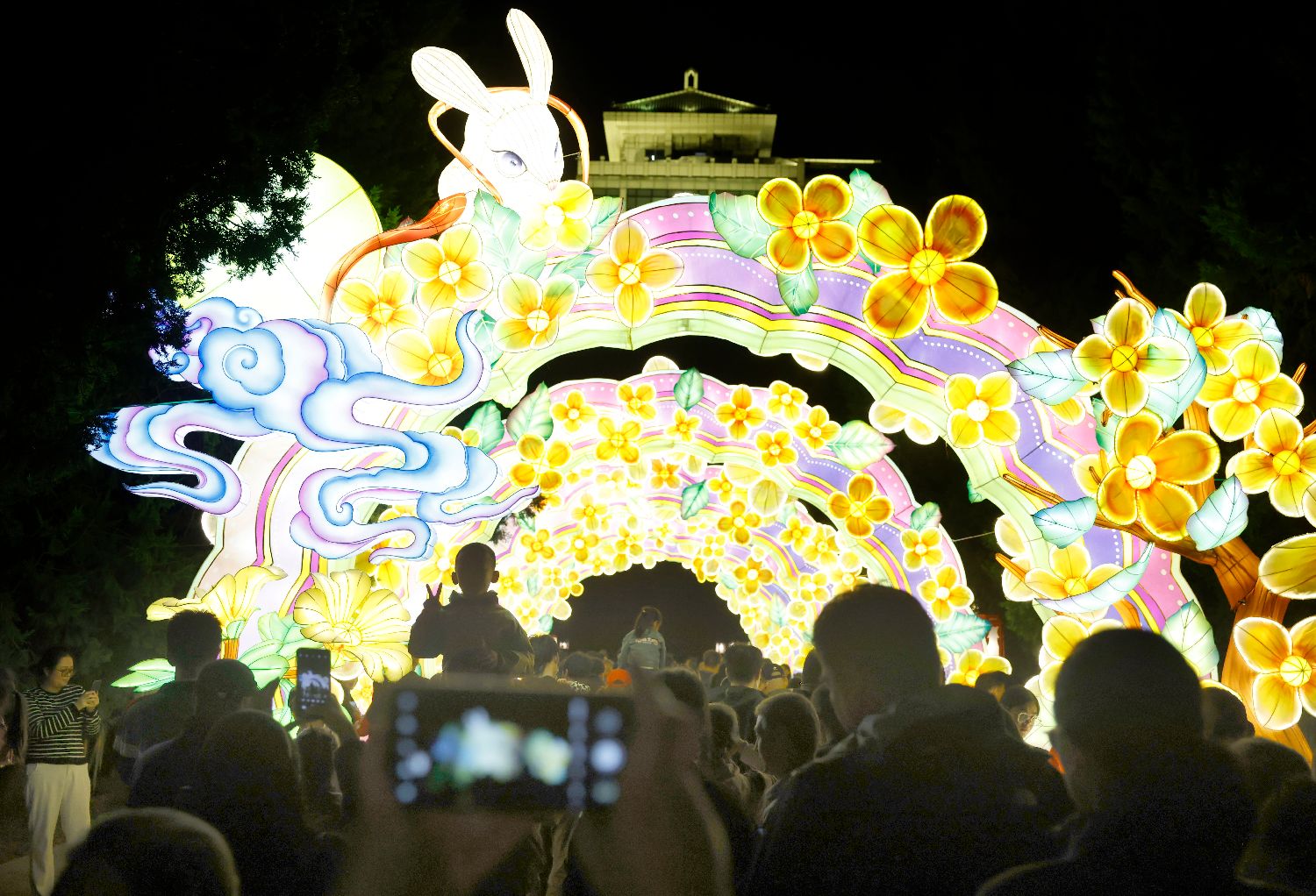 10月6日,在北京月坛公园,造型别致的彩灯扮靓中秋夜。