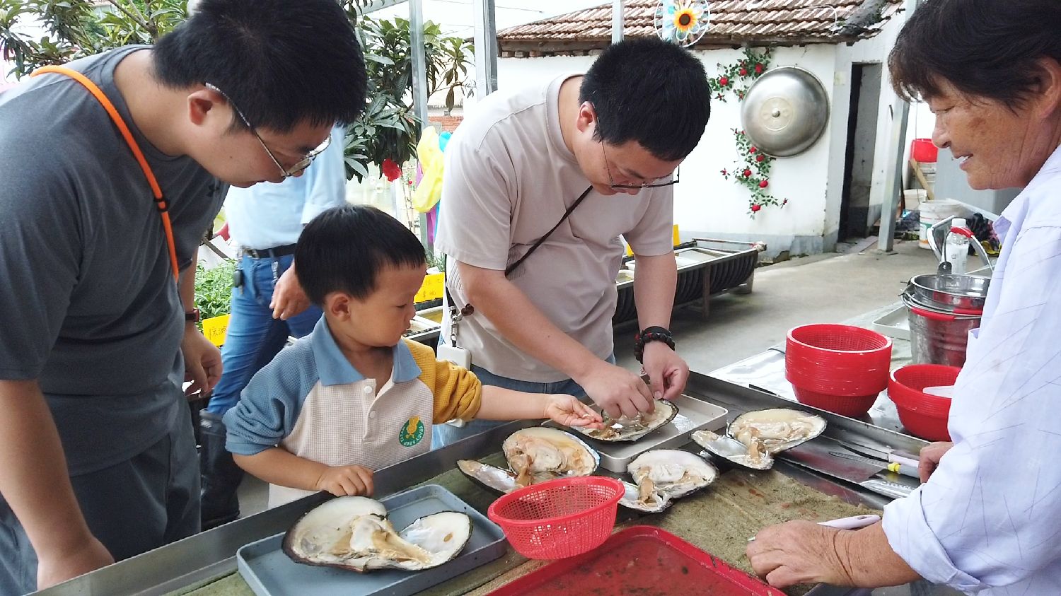 2025年6月,家长与孩子正在进行开蚌取珠体验。(图片来源:中新社)