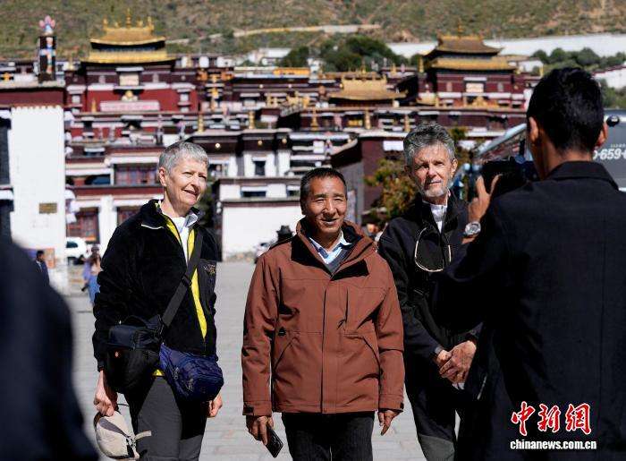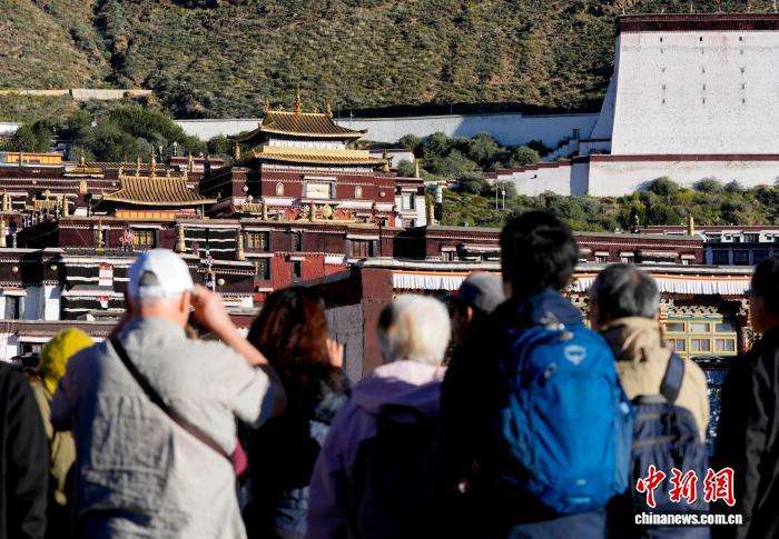 10月7日,外国游客在西藏日喀则市扎什伦布寺参观。(图片来源:本文图片均来自中新网)