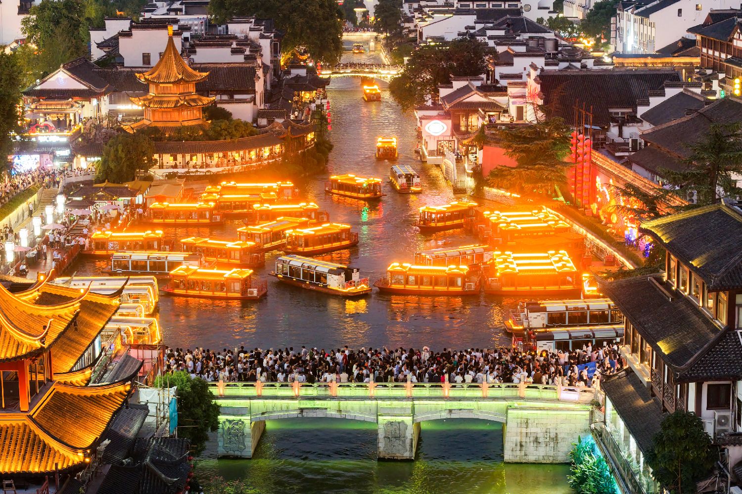 南京夫子庙、西安大唐不夜城、杭州西湖、敦煌月牙泉等景区人头攒动,熙熙攘攘——游客或身着汉服古装轻步缓行,或乘乌篷船在吱呀声中摇橹河上,这是抚今追昔、走马逍遥的体验。