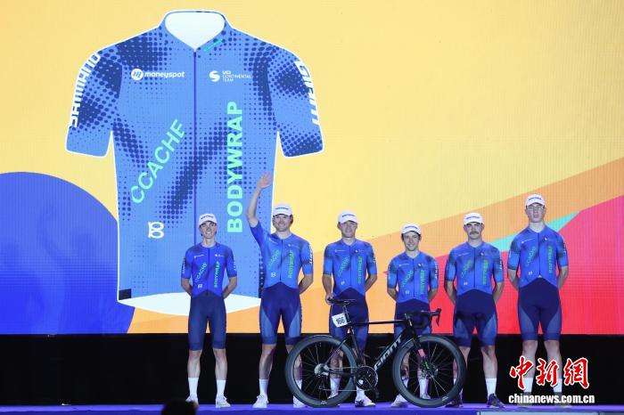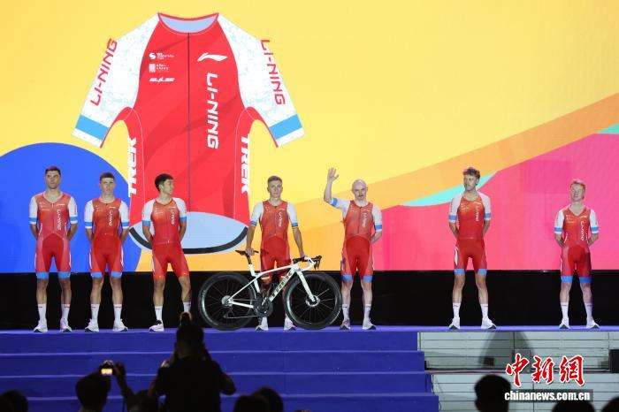 图为中国李宁之星洲际队的车手们登台亮相。