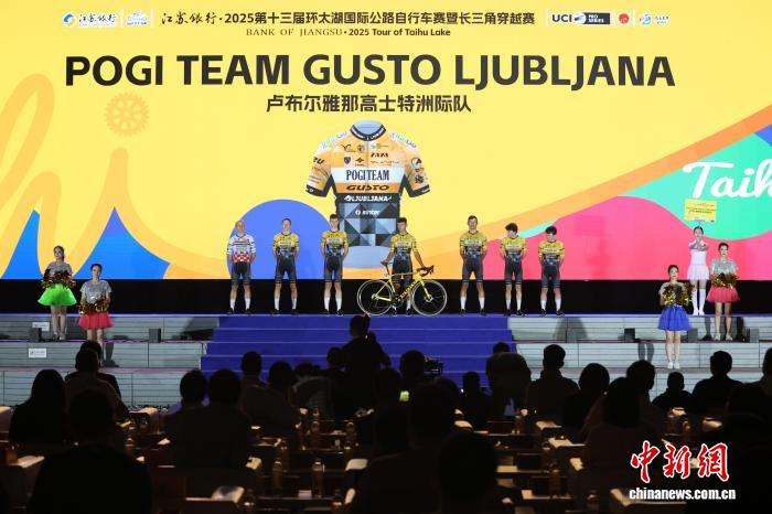 北京时间10月8日晚,2025第十三届环太湖国际公路自行车赛暨长三角穿越赛在南京举行开幕式,来自海内外22支专业车队的车手们集体亮相,他们将在专业赛道上展开激烈角逐,上演速度与激情。