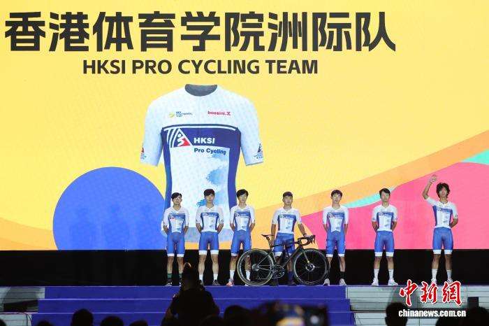 图为中国香港体育学院洲际队的车手们登台亮相。