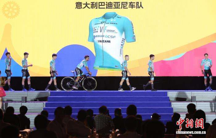 图为卢布尔雅那高士特洲际队的车手们登台亮相。
