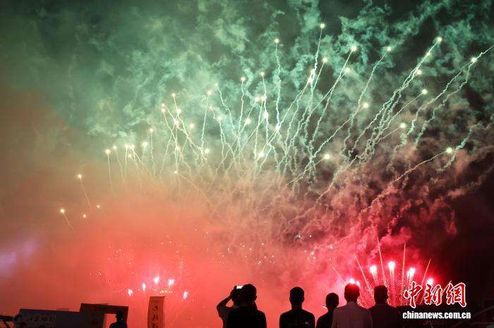 图为开幕式现场燃放烟花。