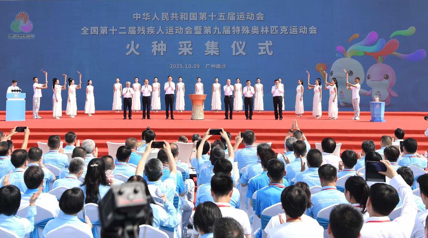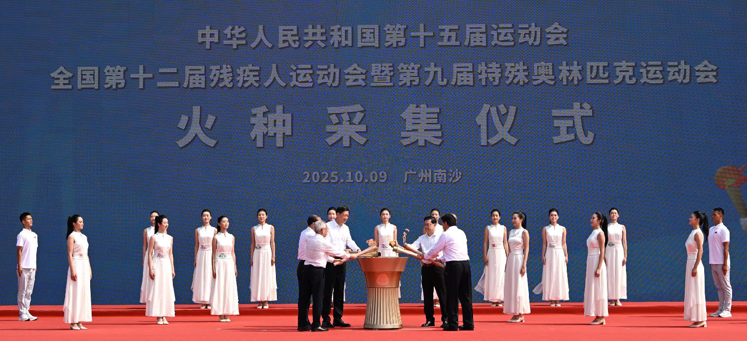 中华人民共和国第十五届运动会、全国第十二届残疾人运动会暨第九届特殊奥林匹克运动会火种采集仪式10月9日在广东省广州市举行。