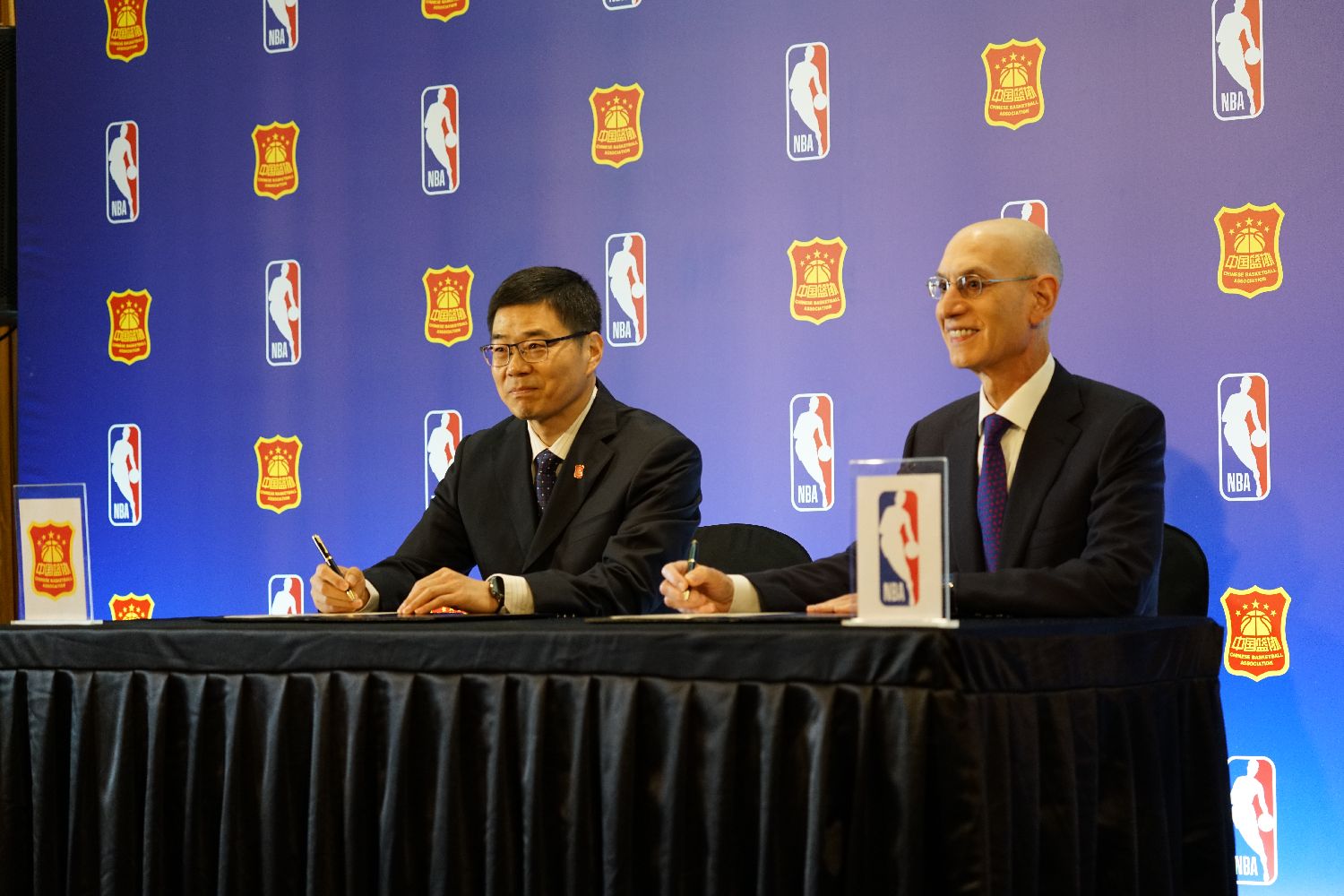 中国篮协主席郭振明与NBA主席亚当·萧华(Adam Silver)当日出席签约仪式并共同签署合作协议。