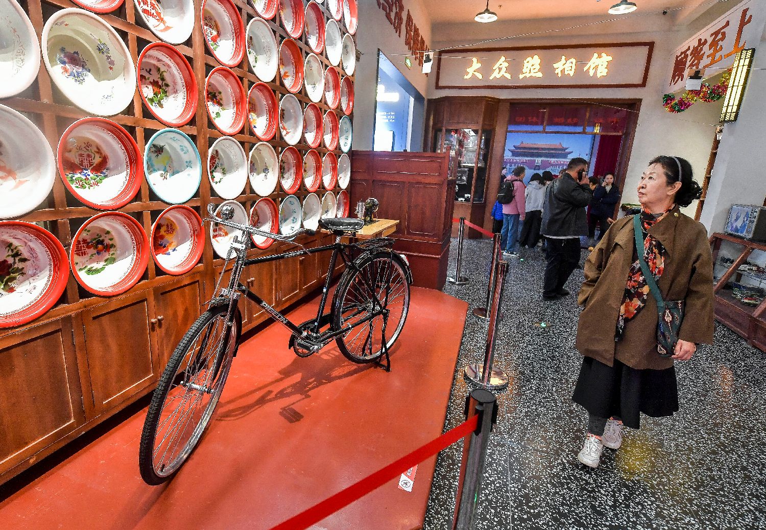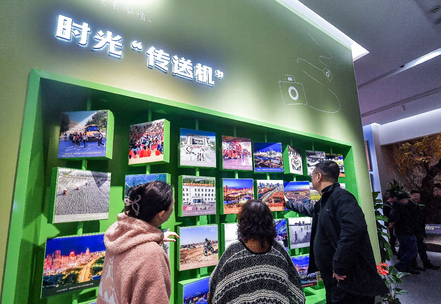 展览汇聚1600余幅图片、1400余件实物模型、150多个多媒体视频和场景还原,展现了天山南北70年的沧桑巨变。(图片来源:中新网)