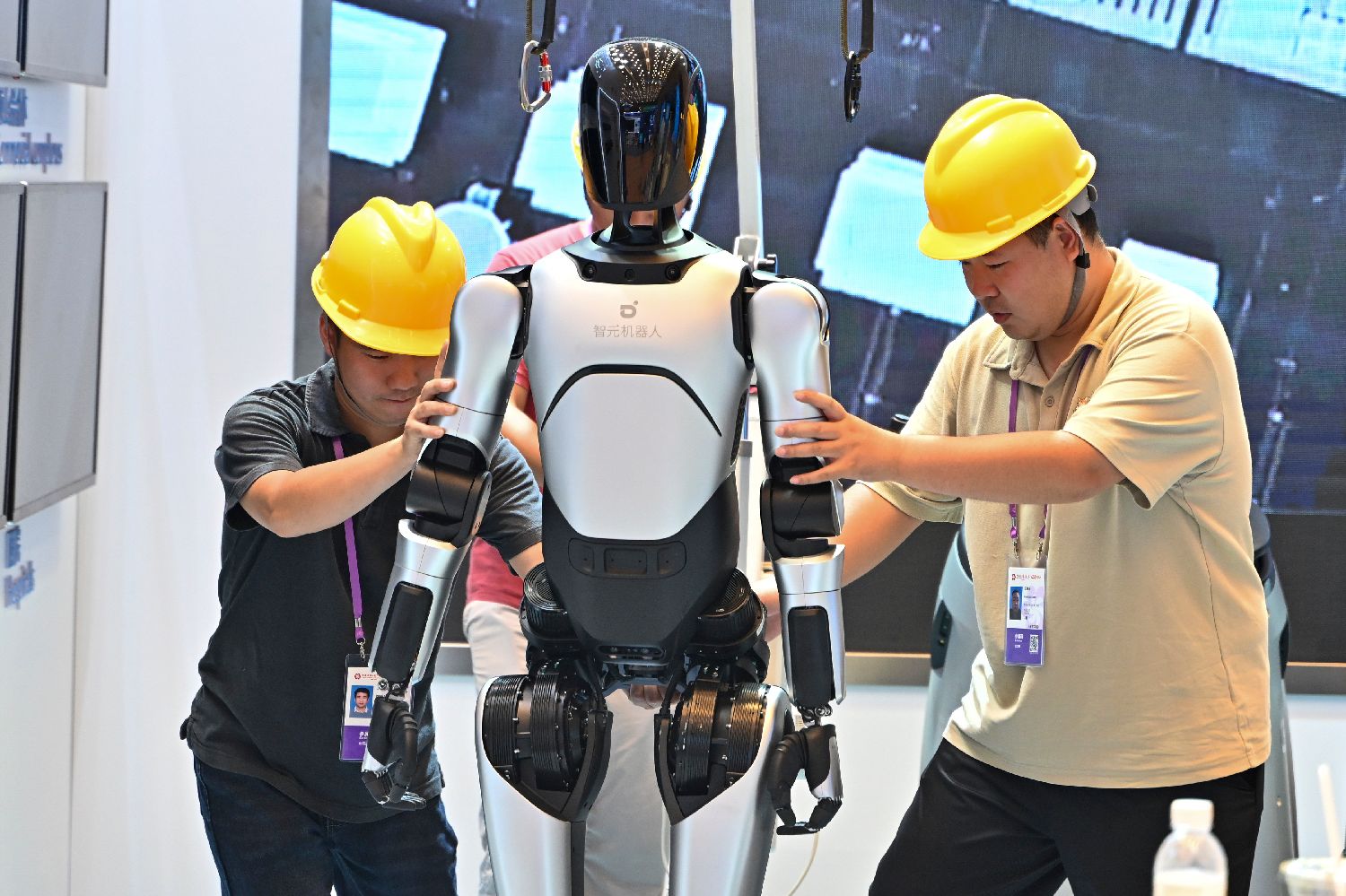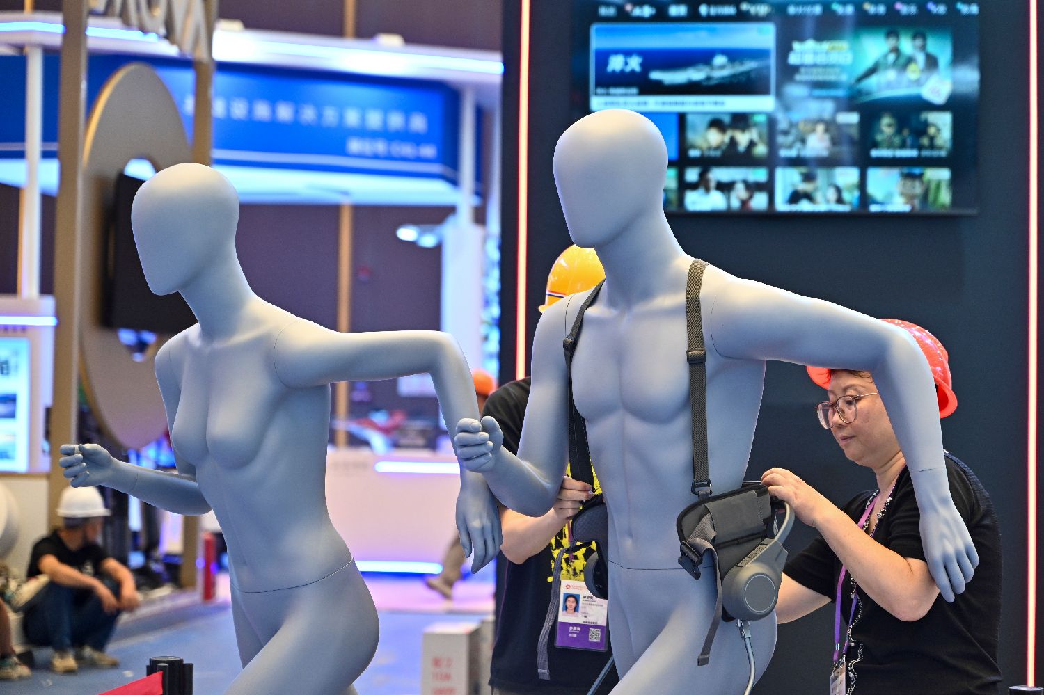 10月13日,工作人员在广交会展馆内布展。第138届中国进出口商品交易会(广交会)将于10月15日至11月4日分三期在广州举行。(图片来源:中新社)