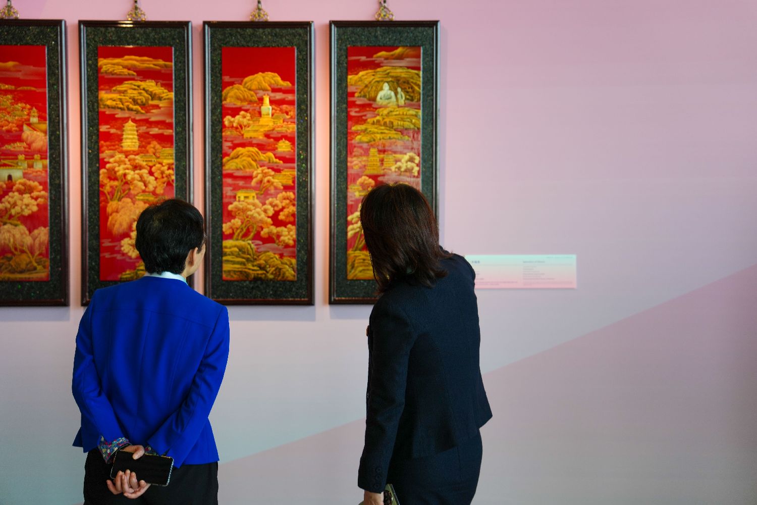 10月13日,参会嘉宾参观全球妇女峰会女性主题特展“华韵承芳·非遗共赏”。