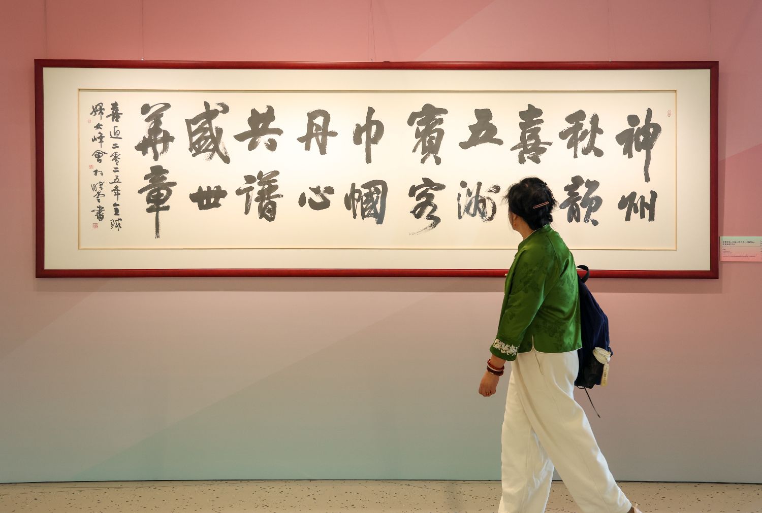 10月13日,一名女性参观全球妇女峰会女性主题特展“华韵承芳·非遗共赏”。