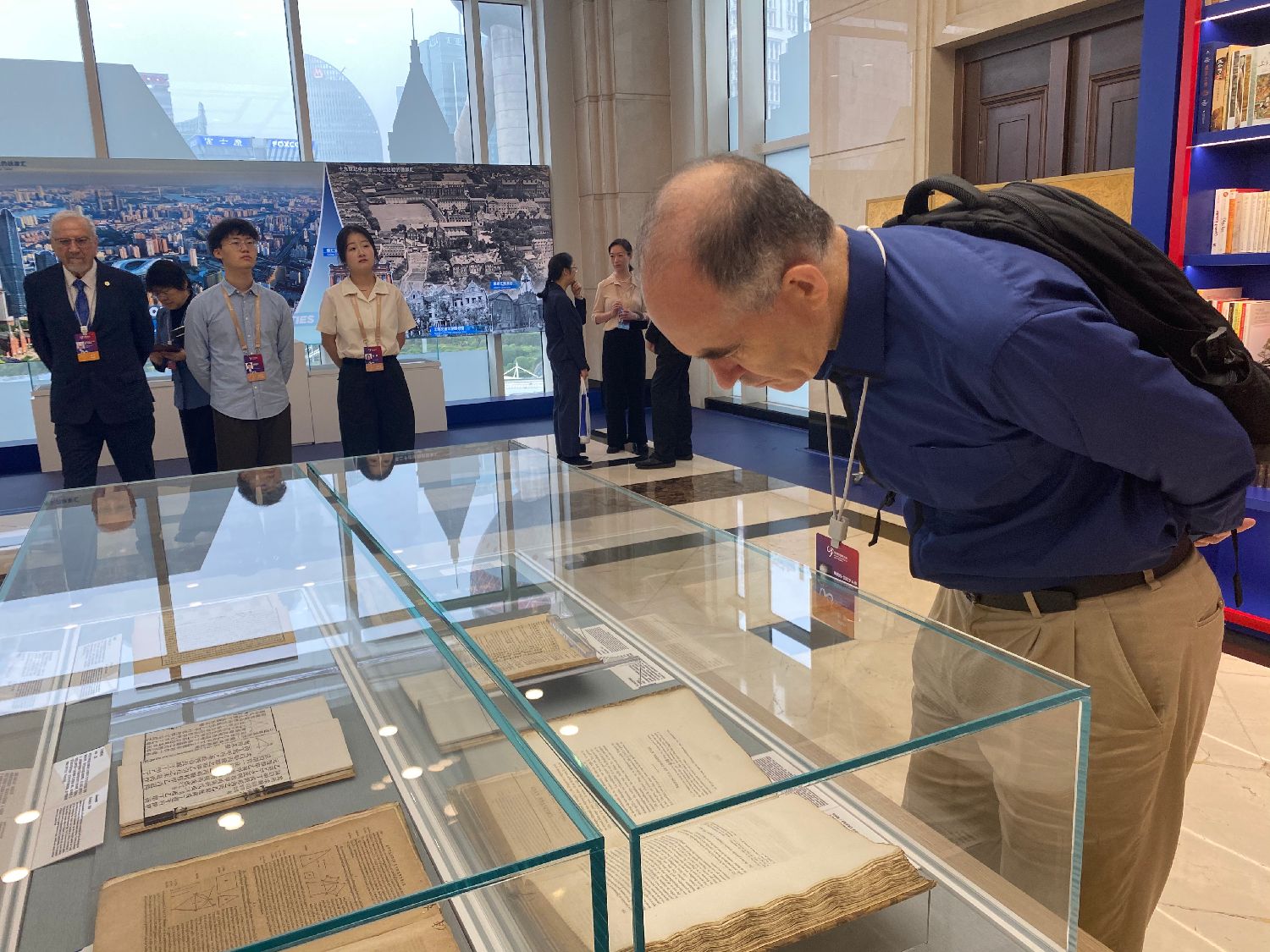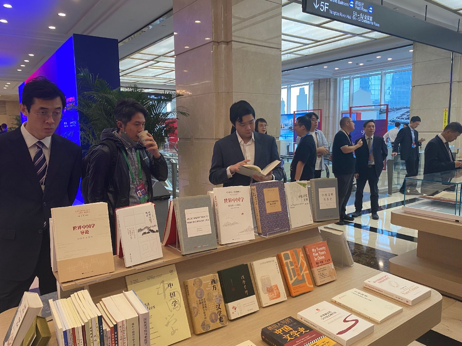 约500位海内外知名专家学者将围绕主题展开深入研讨。会上将发布世界中国学发展倡议,推出世界中国学研究推荐书目。大会期间,还将举办“从文明城市到城市文明”展览。图为与会人员在“世界中国学优秀成果展·文明对话文献展”展区翻阅展出的文献。