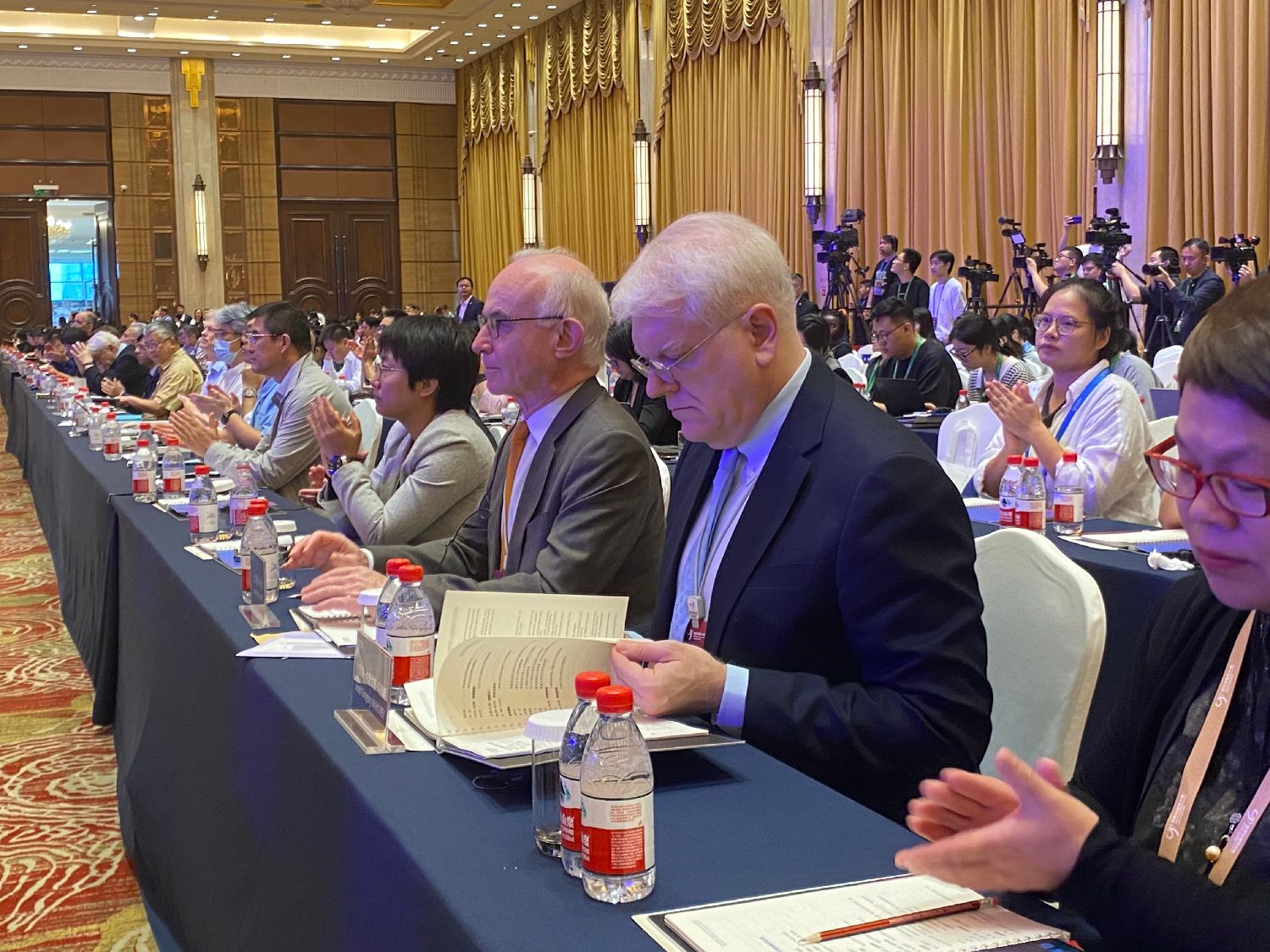 图为意大利前总理、欧盟委员会前主席罗马诺·普罗迪发表大会致辞。